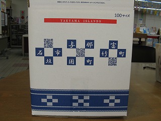 | 石垣島で買った物を送るために ゆうパックの特大(120サイズ)の箱 を買うつもりで八重山郵便局に来たら、 中(100サイズ)の箱が 八重山デザインだったため、 迷わずこちらにした。 みんさー織みたいになっている。 早速、郵便局で組み立てて撮影したが、 この後は、このゴロンとした箱を抱えて、 呑み屋などに行くことになってしまった…。 そしたら、俺が「南の島」から帰る頃に 八重山郵便局員チームが呑みにやってきて 俺のこの箱に気付いたので 俺が「このデザインは上等上等!」 って言ったら随分喜んでいたよ(笑)。 |