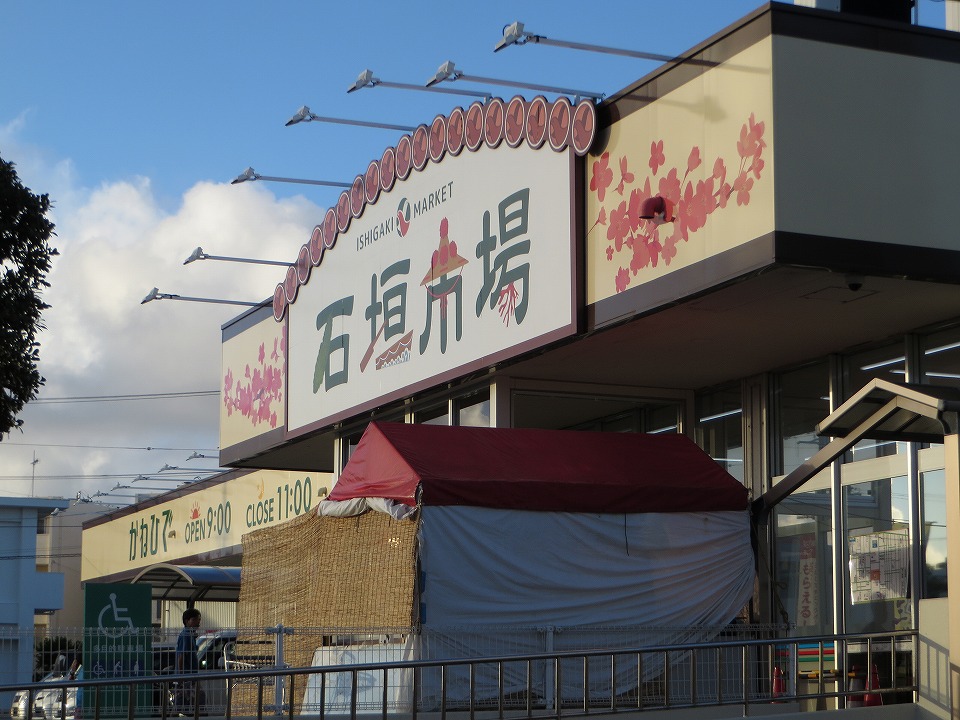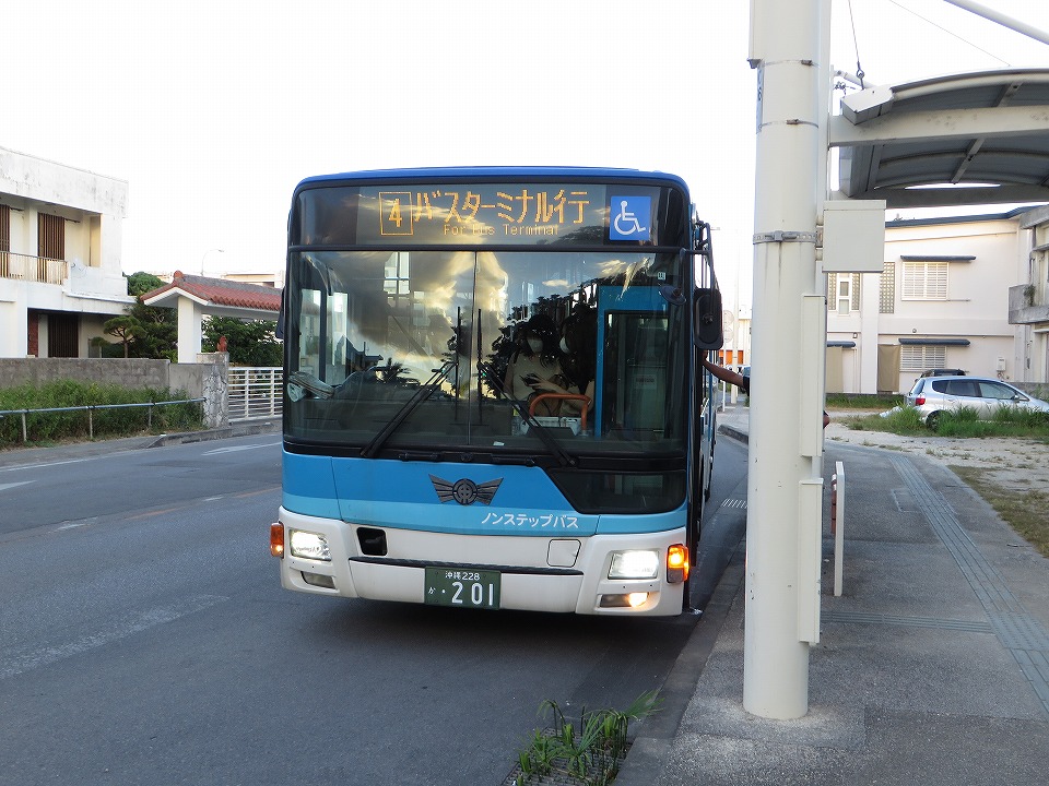 | 空港線の路線バスに「かねひで前」まで数分間乗って、晩メシの買い出しだ。 今日は日曜日のため、いつも呑みに行ってる「南の島」が休みなので、宿で自炊しちゃえ、という企画である。 |
