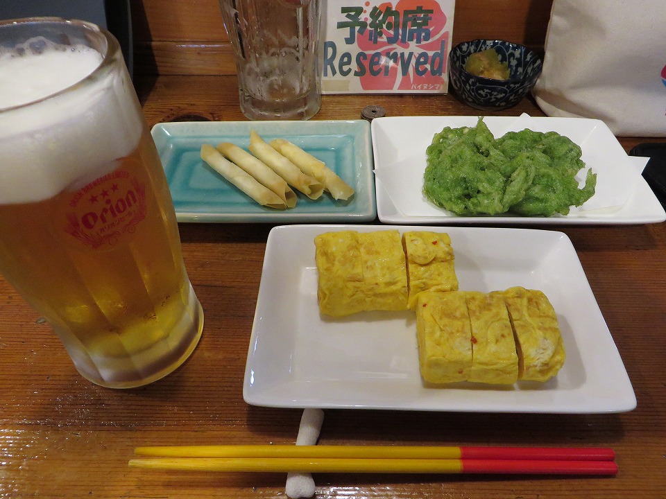 | 外せない島唐辛子のピリ辛卵焼きも注文して、いや〜楽しい楽しい。 |