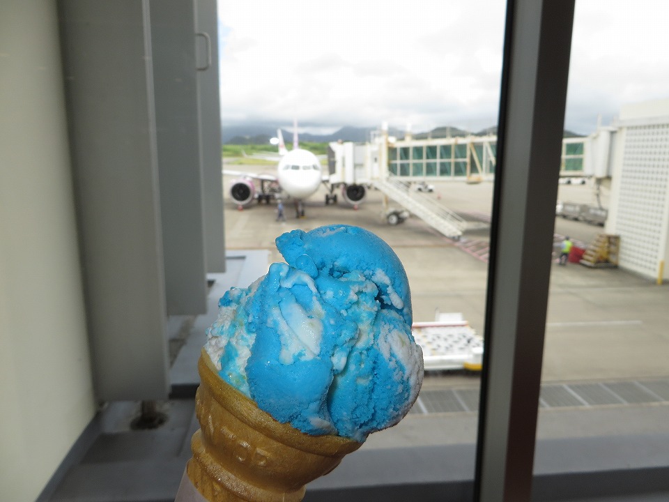 | いよいよヤマトに帰る日だよ。 今回は、羽田直行の安い運賃の席がいっぱいで取れなかったので、 那覇乗り継ぎにしたんだけど、結局こっちの方が安かった。なんなんだ…。 しかも、石垣発がゆっくりだから、チェックアウトの10時まで宿でのんびりして、 それからタクシーで八重山郵便局に寄って荷物を発送して、空港まで来た。 この写真に写っているJTA612便でひとまず那覇へ飛ぶよ。 |