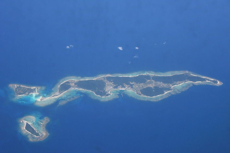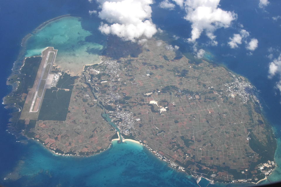 | 石垣島と宮古島の間にある多良間島。 写真上に写っているのは水納島。 |