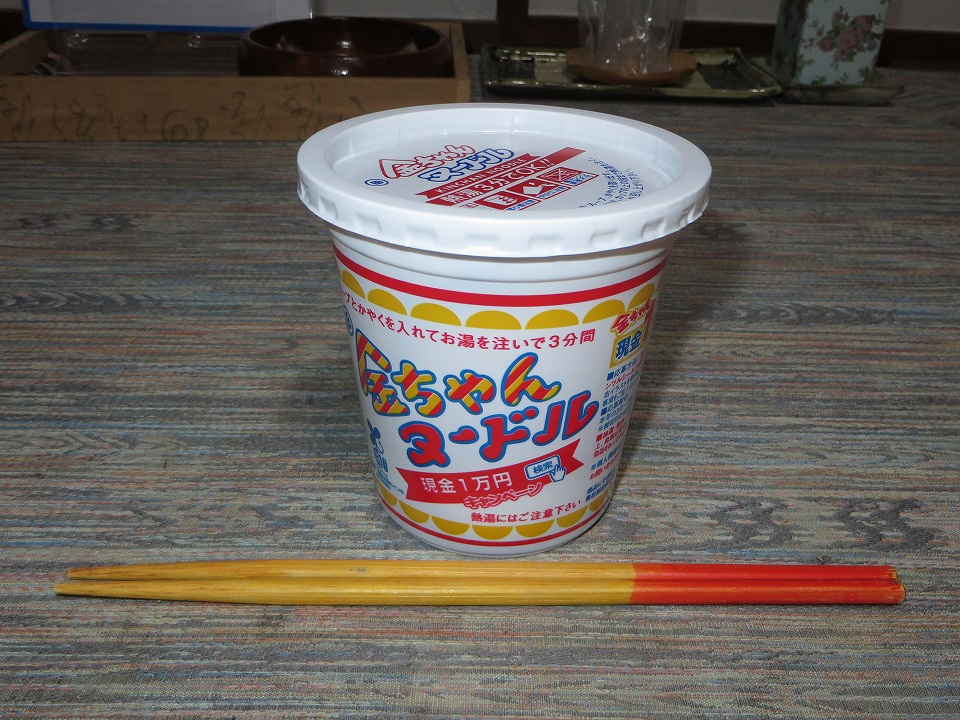 | さぁ、ヤマトに帰る日だ。 朝メシは金ちゃんヌードルをズルズルと。 今や貴重な"二重カップ"だ。 ここでは細かく書かないが、二重だといろいろ便利に使えるんだよね。 コストがかかるだろうし、いつまでこのままでいてくれるか…。 |