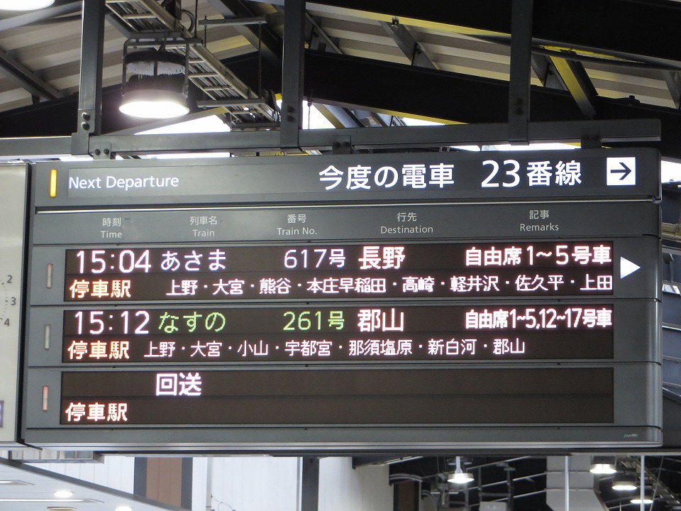 | 東京駅から北陸新幹線「あさま617号」で信州に帰るよ。 |