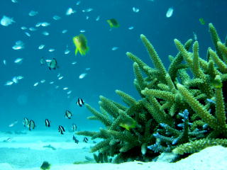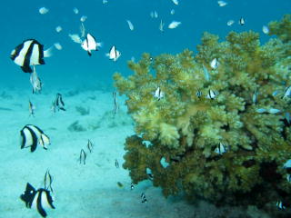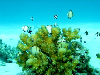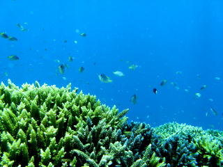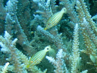 | アオギハゼ | リュウキュウスズメダイとサンゴ。 | キンメモドキの群れ。 | |||