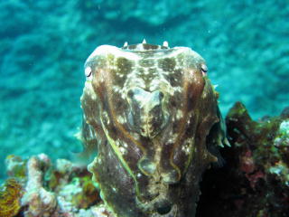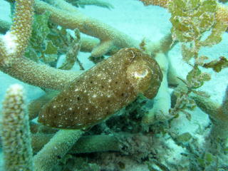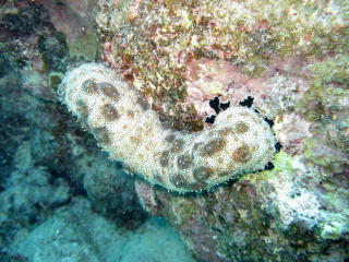長い胴体の端っこから、 黒い足を何本も出して もしょもしょと歩き回るナマコ。 まるで掃除機の先の丸いブラシが 歩いているみたいで ちょいとグロテスク。 |