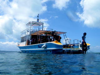 | まいどお世話様の 「オーシャンブルー」のボート kanaloa号。 |