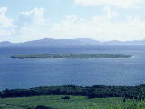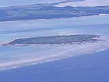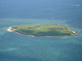 | 嘉弥真島。 飛行機からヒジョーに苦しい姿勢でかろうじて撮影した。だから少し傾いている。 |