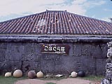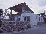| 小浜保育園 | NHKの朝の連ドラ「ちゅらさん」でえりーの実家で民宿ということになっていた「こはぐら荘」。実は個人の家。 | こんなプレートも立っている。 | 島のあちこちで黄色い目立つ看板を見る。食堂「結」とは果たして… | 「結」は普通の食堂だった。 | 消防団の車庫。火事なんかあるのかな? |
