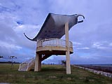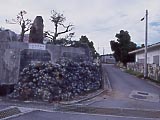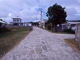 | 40km/h制限の砂利道。 | 小浜島の西の端、細崎へ一本道。 | マンタのオブジェが乗った展望台。 | 家の壁に描かれていた。海人かな? | 細崎の集落内。 | ヨナラ水道。向こうの島は西表島 |
