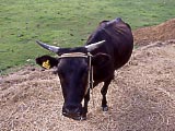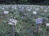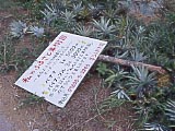 | 港の近くにある、「小浜島観光案内センター」。 | ←の隣にある、「小浜島総合案内所」。レンタカーやレンタバイクもやっている。 | 港にいた「船券売車」。 | うふだき荘の「ふるさと果樹園」。植えた人の名前などが書かれたプレートが立てられている。 | 「ふるさと果樹園」の看板。折れて倒れていた。 | 牛の中にいた、烏骨鶏? |