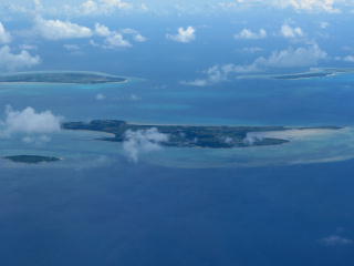 小浜島の大岳の展望台から望む。20年ぐらい前までは人が住んでいたが今は無人。うさぎがたくさんいるらしい。 | 石垣発波照間行きRAC771便から。 | |||