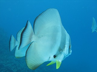 | 2日目の1本目は、 ツバメウオがいるポイント。 20匹ぐらいの群れがいた。 |