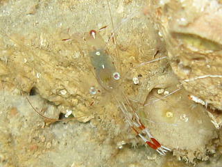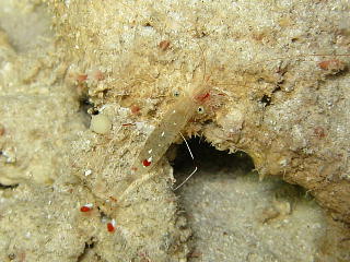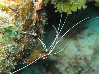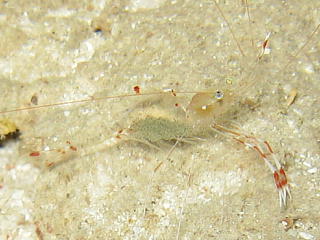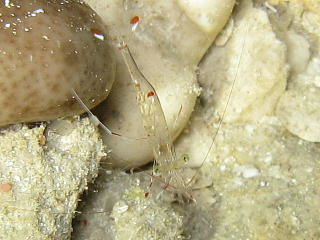 | 別な根にいたアカシマシラヒゲエビ。 |