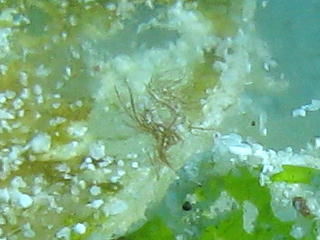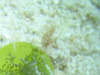 | フィコカリスシムランスという、 和名のないエビ。 数mmの大きさだ。 俺には、なにがなんなのかさっぱり分からん…。 |