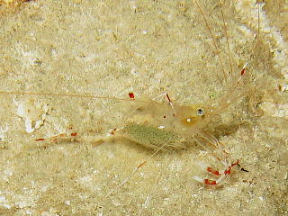 ソリハシコモンエビ。 抱卵している個体はみんな手(ハサミ)を 持っていたような気がするが、 詳しくは検証していない。 |