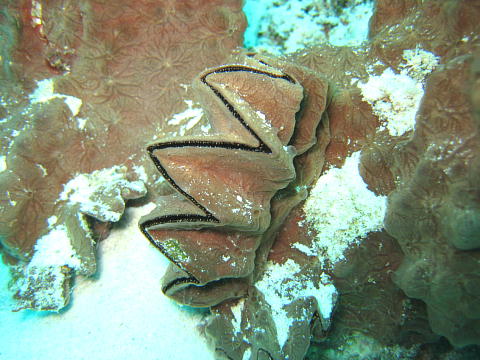 | 3本目は砂地とツバメウオのポイントだった。 去年俺がツバメウオにウンコをかけられたとこ。 貝拾いに夢中になっていてロクに写真を撮らなかった。 なので、せめてツバメウオに対する怒りの気持ちとして、 このトサカガキの凶暴とも思える殻口の写真を載せる(笑)。 |