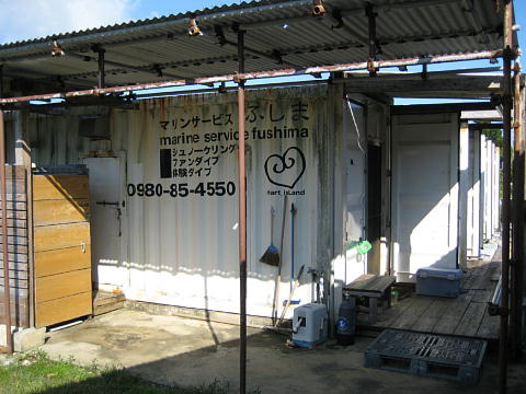 | 石垣島から高速船で約30分で黒島に着いた。 これから3日間黒島で潜る。 お世話になるのは「ダイビングサービスふしま」。 この写真はダイビング後に撮影。 |