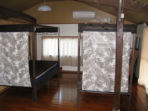 | 建物に入って右には、2つのベッド。 |