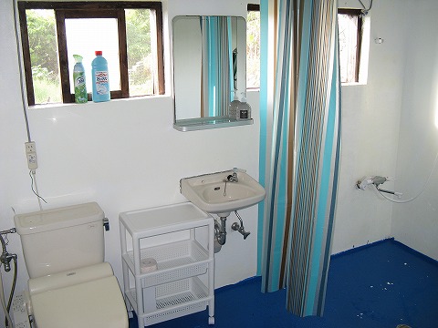 | 水屋の奥はトイレとシャワー。 トイレはシャワートイレ。 ややこしいな(笑)。 |