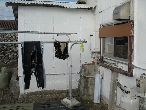 物干し場の一角に島バナナの木があった。 バナナが熟したら喰っていいのかは確認するのを忘れた。 |