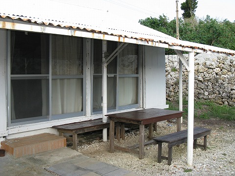 | 門を入った右側はゆんたく場に使えるようなスペース。 ただし、蚊がいるよ。 |