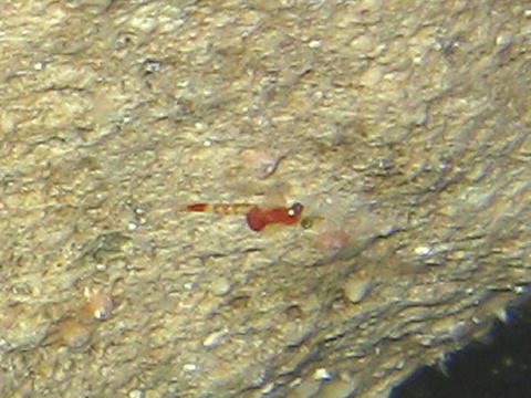 | ソリハシコモンエビを撮影していると、 どうも赤くてちっちゃなのがチョロチョロ動いていることに気付いた。 ピントがとにかく合わせづらいが、何とか撮れたのがこれ。 原版をトリミングしているが、拡大はしていない。 エビ? ソリハシコモンエビの幼生? |