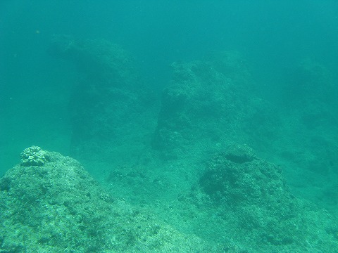 | ダイビング最終日。 1本目はなんとカメラをお店に預けたままにしてしまったので 写真は、なし。 この写真は2本目。 ゴツゴツした岩がいくつもあって、おもしろい。 |
