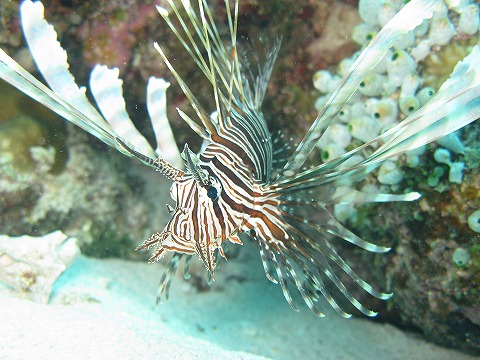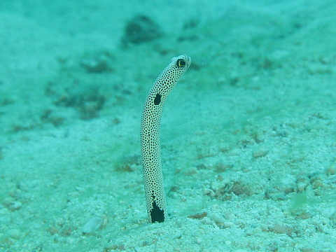 | 上地島での夢のような時間(?)はあっという間に終わり、 ラストダイビング。 砂地と根のポイントでユラユラ遊ぶ。 |
