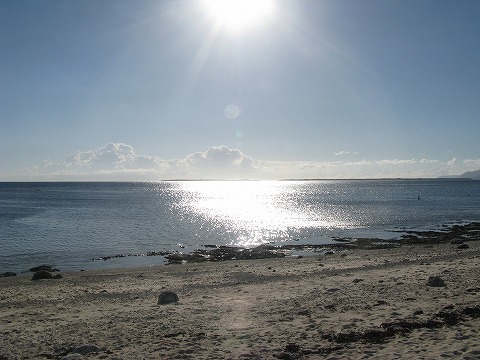 | 黒島のお店に戻り、器材片しや簡単なログ付けが終わったら、 高速船の出航までちょっと時間があるので、 仲本海岸に来てみた。 なんとも穏やかな海だね。 |