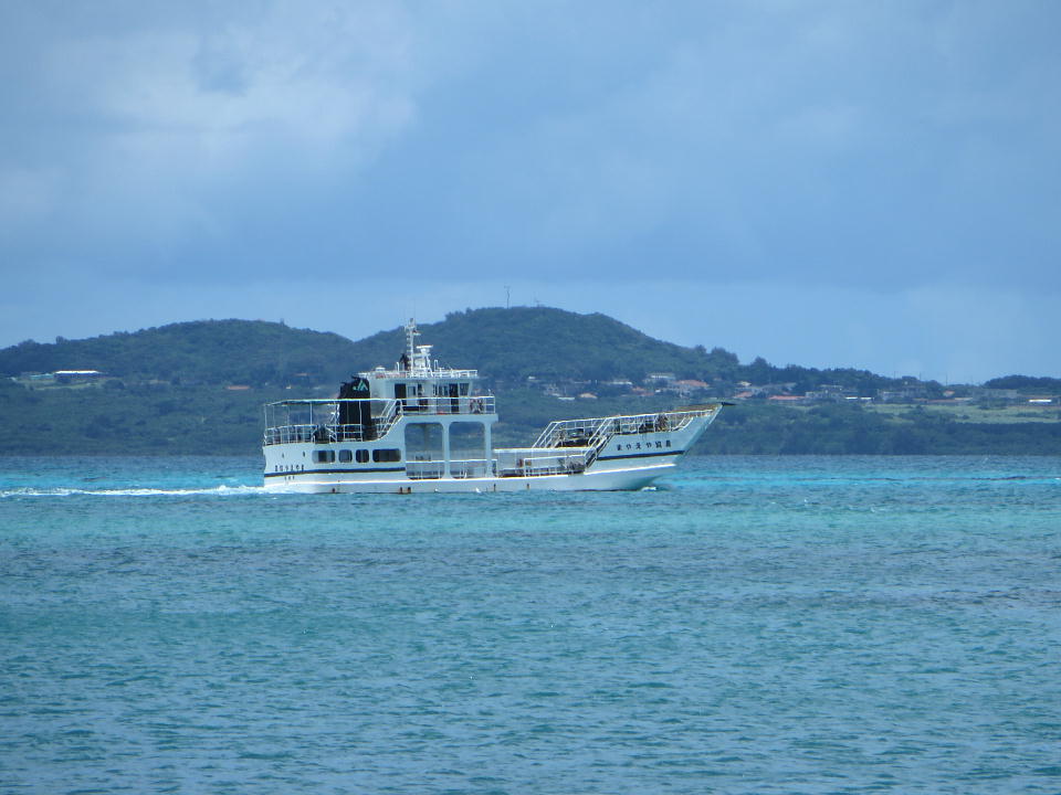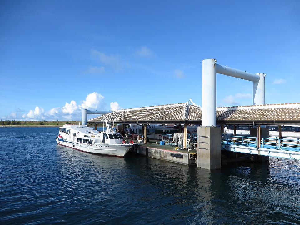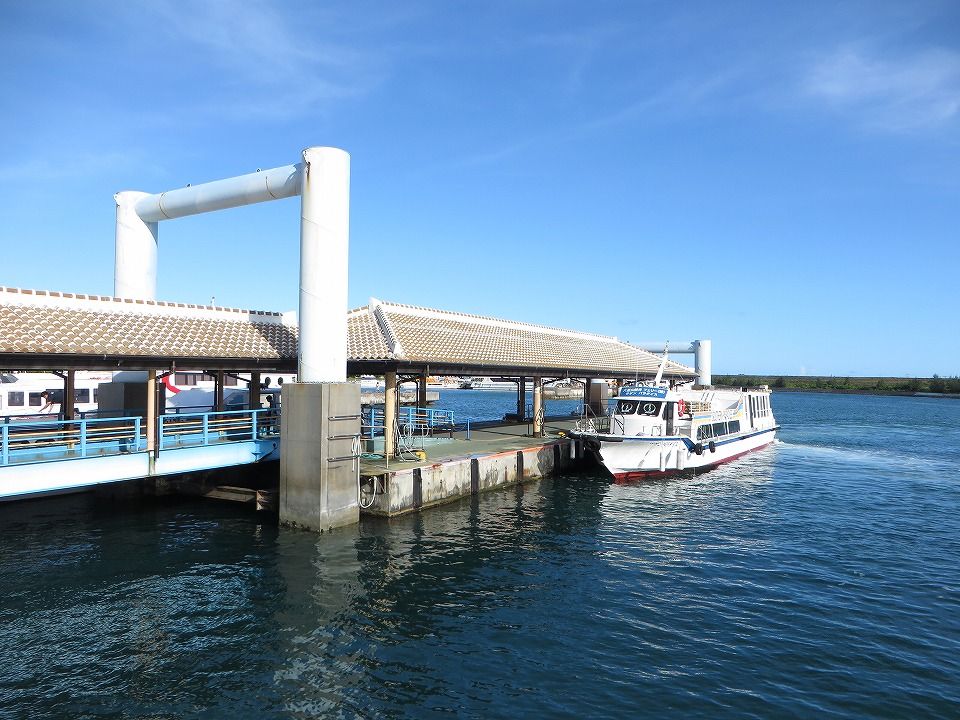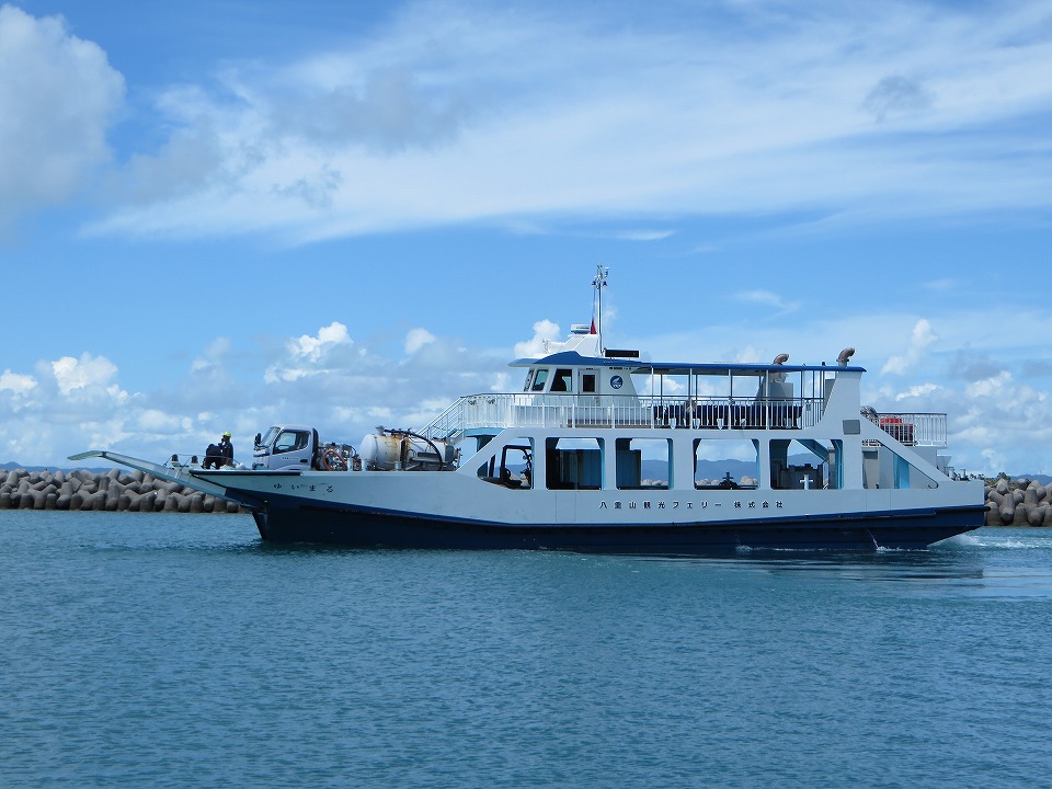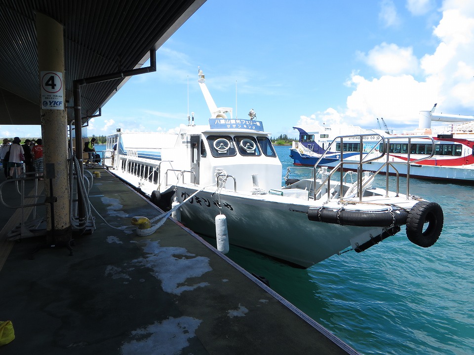 | EXして、いったん港に戻ってきたら、八重山観光フェリーの「ゆいまる」が出航したところだった。 |