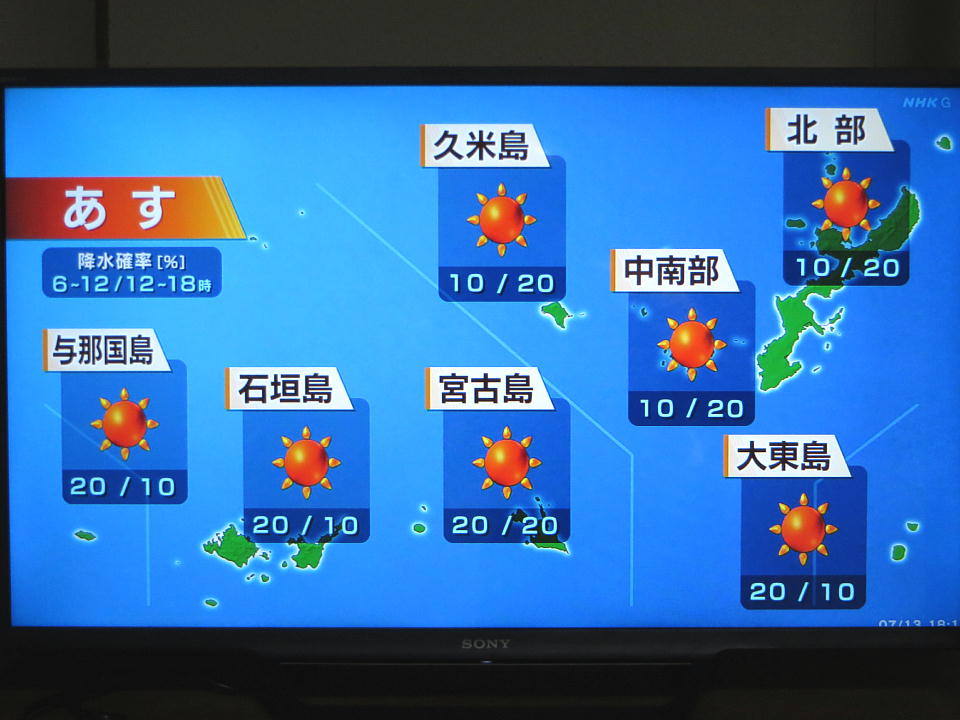 | 高速船で石垣島に戻り、イソイソと呑みに行く準備をする。 明日もよく晴れそうだよぉい。 |