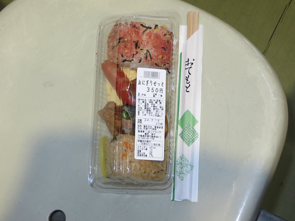 | さぁ、この夏のやいまダイビングの最終日。 離島ターミナルでおにぎりせっと350円ナリを喰って、 元気に黒島に出発なのだ。 |
