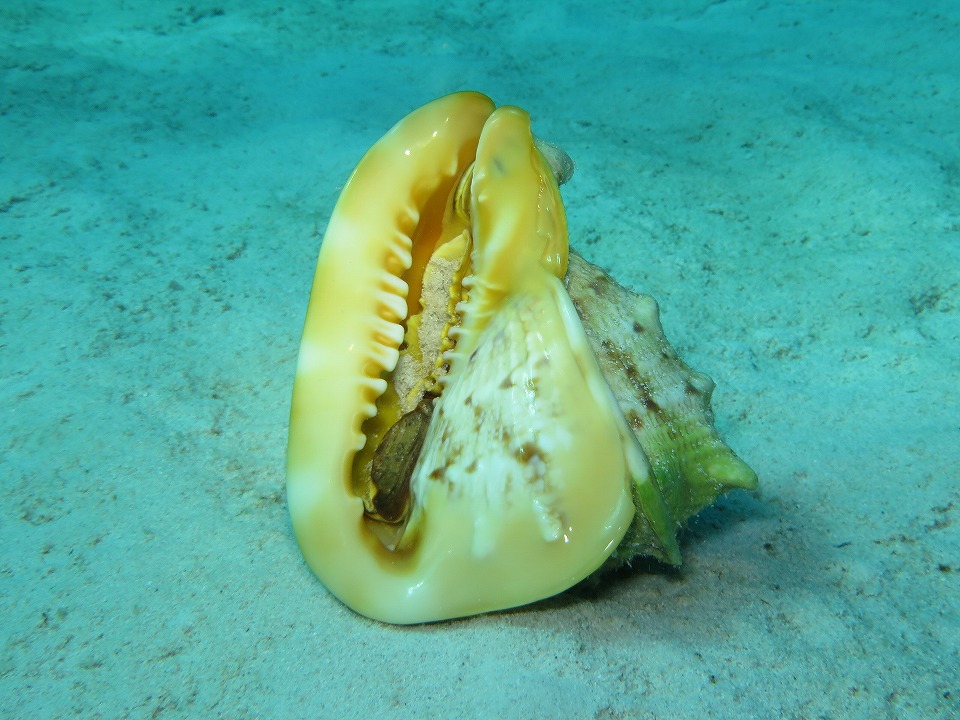 | スイジガイ。 トウカムリガイと同じく、コイツも貝殻が欲しいんだけど、いっつも中身がいる…。 |