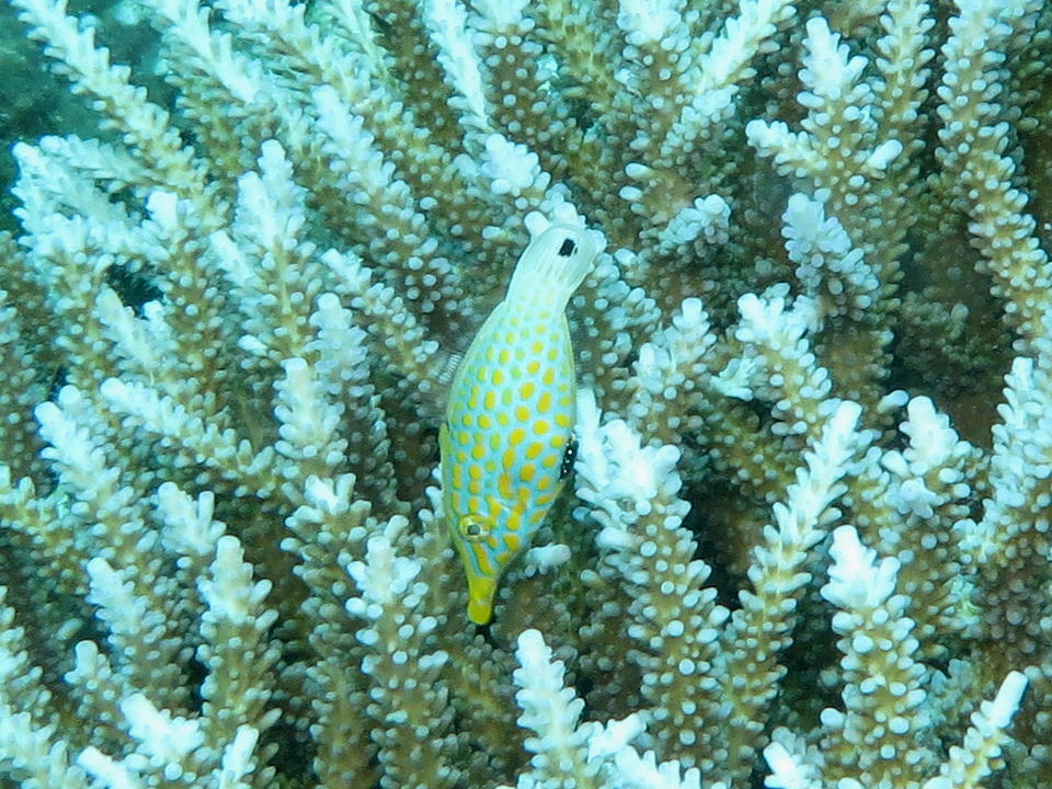 | フィコカリス・シムランス。 1枚上の写真と同じ個体で、もっと近付いて撮影しようとカメラをさらに近づけたら、 ス〜〜〜ッと泳ぎ出し、移動してしまった。 一旦見失うと再発見が結構難しいので、動きに気を付けていないといけない。 |