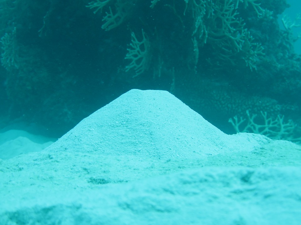 | 海底から何かが噴き上げる砂で、まるで富士山みたいな山ができていた。 |