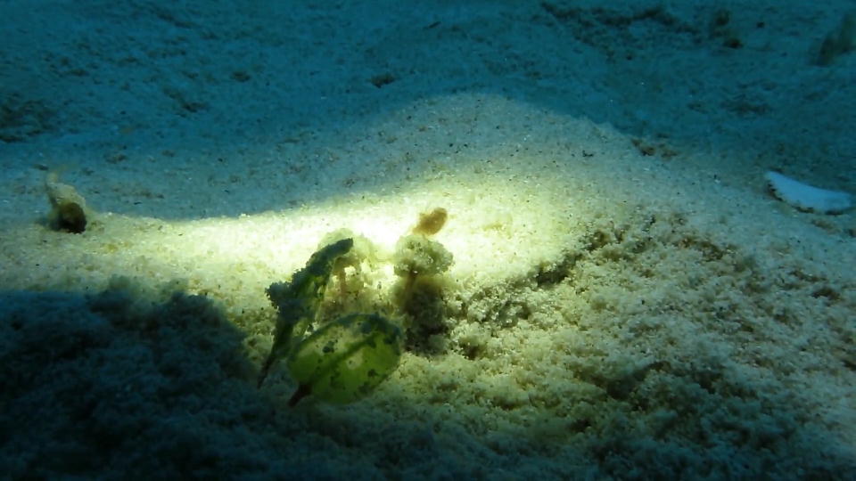 | ちょっと休憩して、「テラピー」で2本目。 キセワタウミウシとヒョウモンツバメガイ。 |