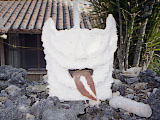 | 小浜荘「別館」の赤シーサー。 | 小浜荘「別館」の白シーサー。 | あらら、←の3か月後には色が付いてたよ(笑)。 |