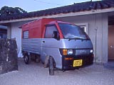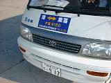 港から集落までの送迎バス。 要するにワンボックスカー。内地のようなちゃんとした「バス」を想像してはいけない。 |