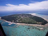 | 竹富島。与那国発石垣行きJTA962便から。 | 竹富島。石垣発与那国行きJTA961便から。 | 1番左の写真の方がきれいだな。逆光でした。羽田発石垣行きANK551便から。 |