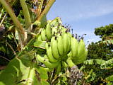 島バナナの木。 まだ青いやつをヒモでぶら下げておくと段々黄色く熟していく。旨い。 |