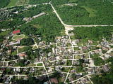 | 集落上空。東から西方向を撮影。石垣発波照間行きRAC771便から。 | 集落。JTA961便から。 | ←の写真から小浜荘を切り取りました。 | 桟橋上空。中央少し右に浮き桟橋が小さく確認できる。石垣発与那国行きJTA961便から。 |