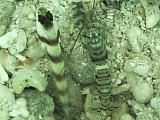 ミナミダテハゼとテッポウエビの共生。ミサシなら潮の満干にもよるだろうが、大人の腰ぐらいの水深のところでたくさん生息しているので、じっくり観察できる。背中の日焼けには気を付けよう。 | ミサシにて。 | ミサシにて。 | サラサハゼ | トゲチョウチョウウオ |