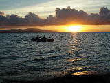 | 夕日が沈む頃カヌーを楽しんでいる人がいた。 |