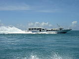 竹富島沖の高速船。 | 竹富島沖を疾走するにぃぬふぁぶし。 | |||