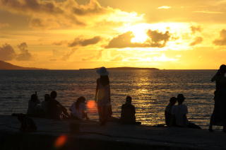 | 島の道を、両手に花でいいな。 | 島で呑むオリオンは、 何ででーじまーさんかね〜。 |