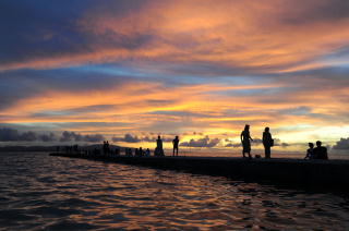 | 西桟橋 | 西桟橋。20:05でまだこの明るさ。 | 「小浜荘」で晩メシを喰ったら、 ほとんどの客は西桟橋へ向かう。 早めに帰ってきたら、まだ誰も 戻ってきていなかった。 |