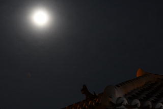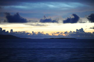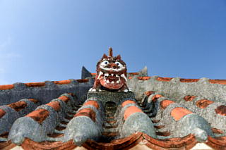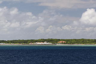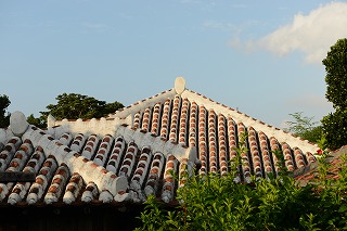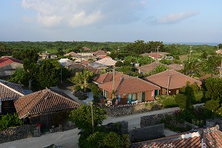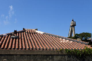 | 赤瓦 | 「なごみの塔」からのおなじみの風景。 余談ですが、 水平線基準でアングルをとっているので、 島影は少し右下がりになっていますよ。 カメラが傾いているんじゃないからね。 |