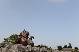 2匹のシーサーとブーゲンビリア。 | 小浜荘別館のシーサー。 | |||