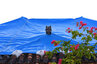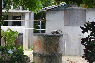 | 島内風景 | 貯水槽の上でどらねこがのんびりお昼寝。 |