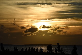 | 晩メシを喰ったら 自動的に(笑)西桟橋へ。 竹富島に宿泊する人たちだけの楽しみ。 石垣島から慌ただしく日帰りで やってくる観光客は味わえないのだ。 や〜い。 てぃだは今日は(も?)途中で雲に 隠れてしまい、あまり美しくはなかった。 |